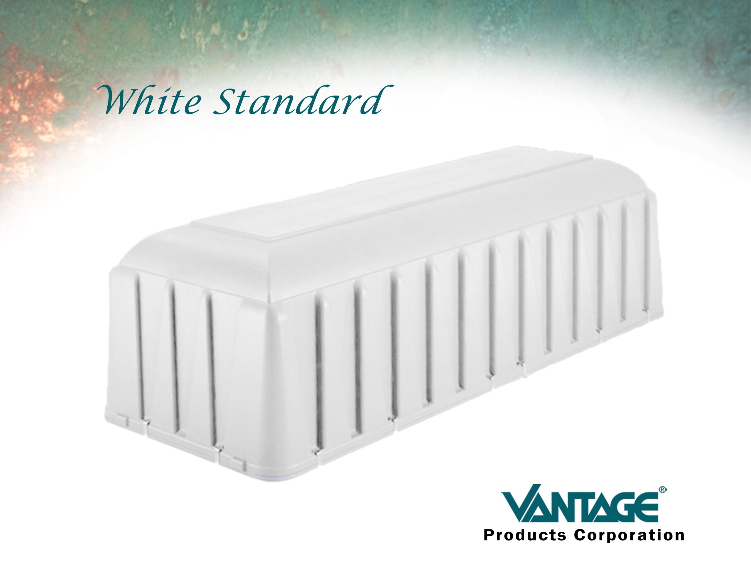 Air seal burial vault. Injection moulded poly-propylene, seamless construction.